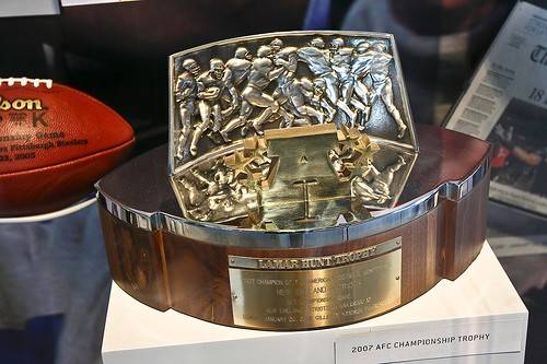 Since 1984, each winner of the AFC Championship Game has also received the Lamar Hunt Trophy, named after Lamar Hunt (August 2, 1932 – December 13, 2006) was an American sportsman and promoter of American football, soccer, basketball, and ice hockey in the United States and an inductee into three sports’ halls of fame. He was one of the founders of the American Football League (AFL) and Major League Soccer (MLS), as well as MLS predecessor the North American Soccer League (NASL).